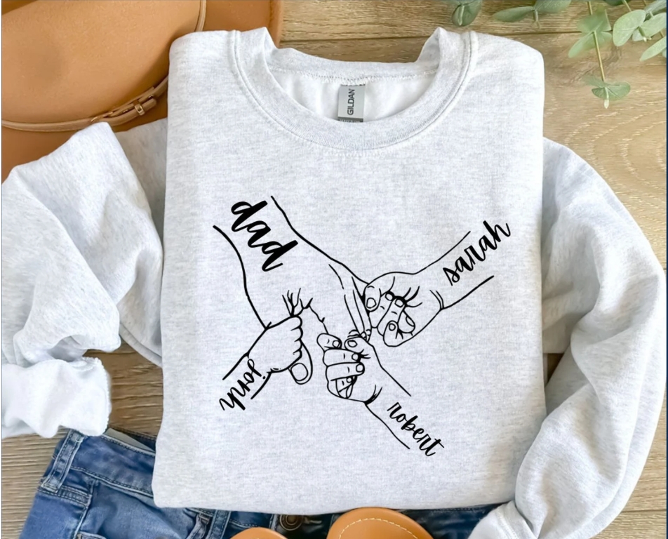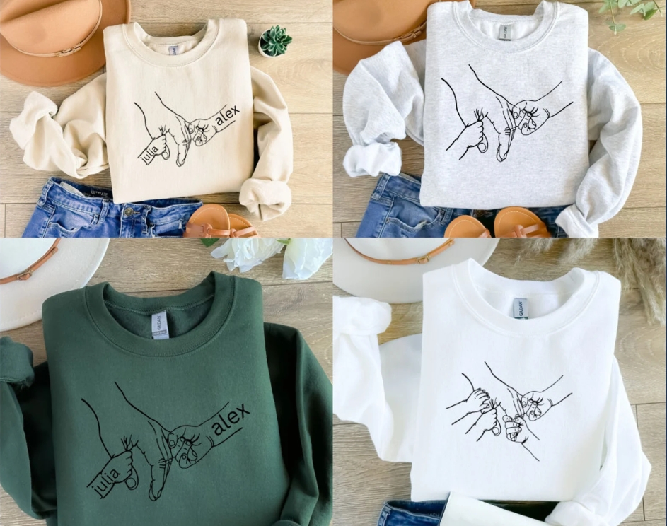 Esta sudadera personalizada con ilustración de manos representa el vínculo más fuerte: la unión entre las personas que más queremos. Un diseño minimalista y lleno de significado, perfecto para convertir un momento en un recuerdo para siempre.